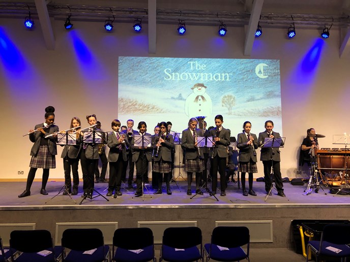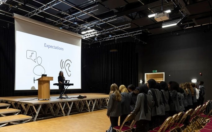 All pupils, whether or not they are music specialists, have an enhanced offer for music throughout their time here. We offer rich and varied musical experiences to all students, regardless of their previous background or experience: making use of our purpose-built concert hall for regular performances and compulsory choir, the offer of a free instrument and heavily discounted lessons (see the 'Trailblazers' section), more curriculum time for music and a team of expert instrumental and vocal teachers.